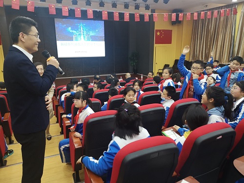 面向粵東地區,4月21日,中國衛星航宇衛星科技黨總支開展航天精神進校園活動,組織科普團隊先后赴汕頭金珠小學、金陽小學開展系列宣講。五院航天精神宣講團特邀講師、中國衛星航宇衛星科技黨總支書記鄧文浩,與同學們面對面交流,回顧中國共產黨發展歷程,介紹中國航天發展歷程,講授航天精神內涵,點燃青少年心中的科學探索夢想,激發同學們的愛國熱情。